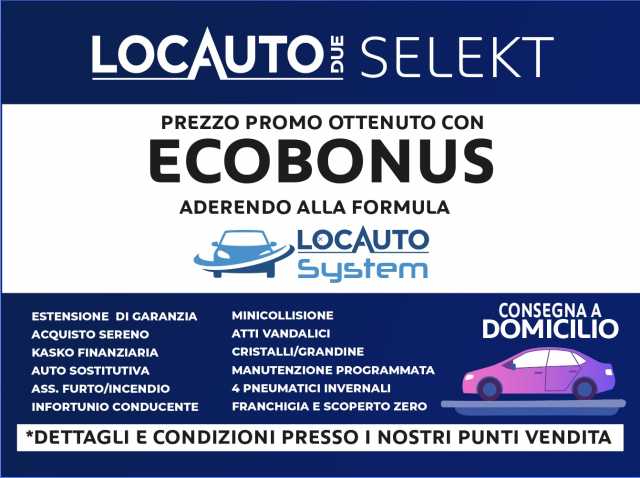 Rif. 8025870 Scegli la tua nuova auto con un Click! Ti verrà consegnata direttamente a casa da un trasportatore di nostra fiducia. Tutte le nostre vetture vengono consegnate: - Con almeno 12 mesi di GARANZIA legale di conformità - Completamente igienizzate - Dopo aver superato 100 rigidi controlli - Certificazione chilometrica Valutiamo la tua vettura in permuta. Chiamaci e prenota la tua valutazione oppure, inviaci foto, caratteristiche e condizioni generali di meccanica. I nostri consulenti alle vendite saranno a tua disposizione per una prima valutazione indicativa che verrà confermata a seguito di visione e prova su strada. Offriamo finanziamenti personalizzati comprensivi di: furto-incendio, atti vandalici, eventi socio-politici, calamità naturali e cristalli il tutto con scoperto e franchigia ZERO. Per rendere il nostro ricontatto più celere ed efficace, inserisci un recapito telefonico nella Tua richiesta, specificando un eventuale orario di preferenza per il ricontatto. Per informazioni: - Telefono fisso: 0119942860 - Telefono mobile: 3385048933 - Email: rosta@locautodue.it - C.so Moncenisio, 79 Rosta (TO) (autostrada Torino-Frejus, uscita: Rosta-Zona Industriale) Per maggiori dettagli o immagini consulta il nostro sito https://www.locautodue.com/occasioni/ La descrizione nella scheda potrebbe non coincidere con il corretto equipaggiamento del veicolo, a causa dei possibili aggiornamenti di allestimento e della non uniformità dei dati pubblicati dai diversi siti. Ti invitiamo a verificare con i nostri consulenti alle vendite le dotazioni e le caratteristiche del veicolo di tuo interesse. Locauto Due S.r.l. declina ogni responsabilità per eventuali involontarie incongruenze che non rappresentano in alcun modo un impegno contrattuale.